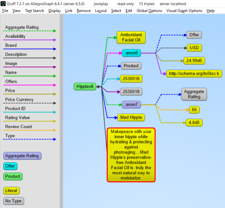 In the above we see that the JSON-LD was correctly translated into